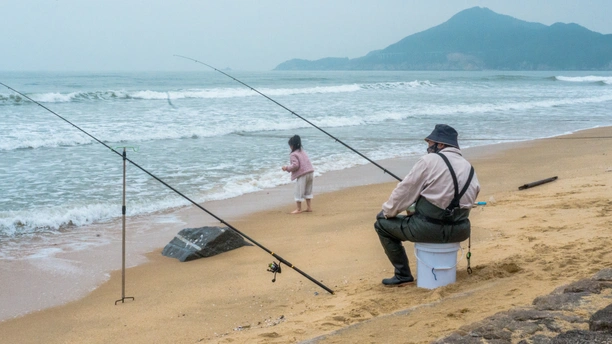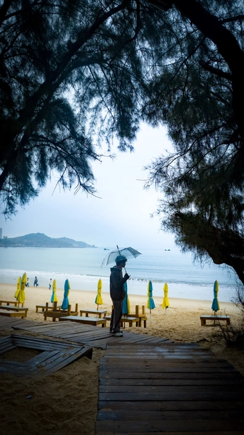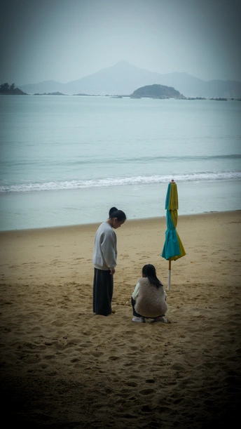 这组作品以海岸为载体,定格了潮起潮落间最鲜活的人间百态。翻涌的海浪是永恒的底色,沙滩上肆意翻跃的少年、弯腰玩沙的孩童、静坐待鱼的钓者、雨中撑伞的独行者、举着相机记录风景的人,都在同一片海畔,书写着各自的日常。没有刻意的戏剧化表达,只用平实的镜头,捕捉海边生活里不被惊扰的松弛与温柔。大海容纳了无数情绪,而真正让海有温度的,从来都是这些散落在岸畔、热气腾腾的平凡烟火。