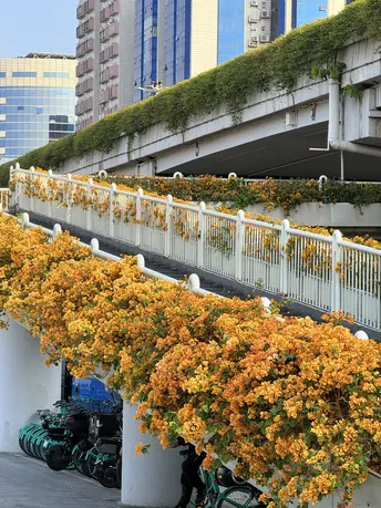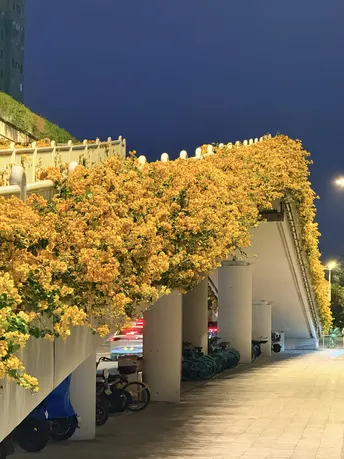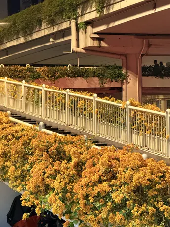 地铁直达! 太美了,黄色的三角梅天桥又开花啦! 人少好拍,刚刚开花?,未来一周盛花期; 广州的春天太浪漫了, 处处都是鲜花盛开! 人少好拍,冲冲冲! 连天桥都开满花,迫不及待地迎接春天的到来! 穿着推荐: 白色或浅色连衣裙?,lolita,JK都?! 浪漫的花海,做个浪漫的你! ?位置:广州市越秀区彩虹桥人行天桥; ?交通:地铁8号线彩虹桥站G出口;