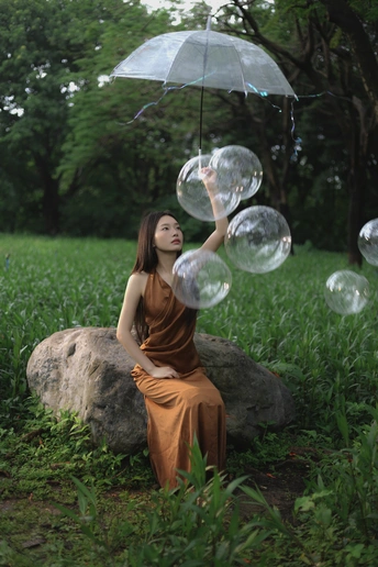 把心事藏进透明泡泡, 让夏风带着温柔, 在绿野里慢慢摇晃。