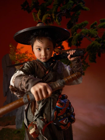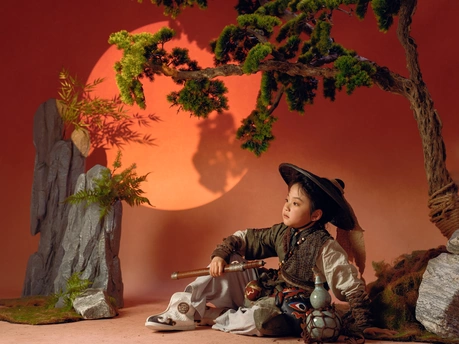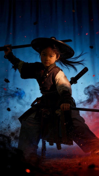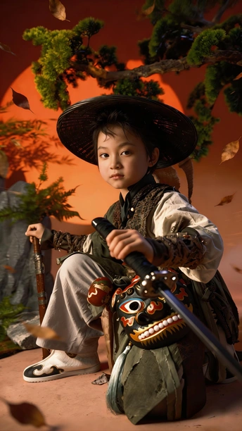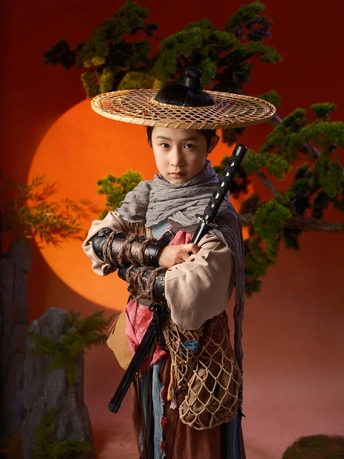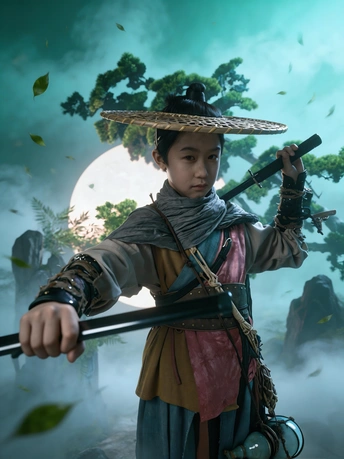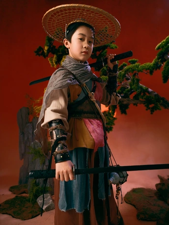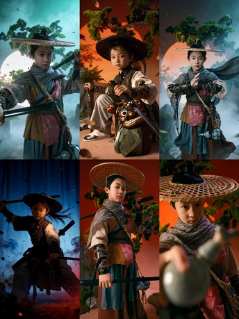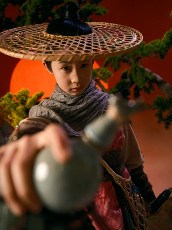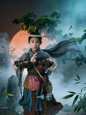 斗笠遮不住眉眼间的锋芒, 旧衣裹着未凉的热血, 松枝为友,日月作伴, 剑未出鞘,江湖已在脚下。 风卷落叶,雾漫青山, 这一身侠骨, 是少年对天地最滚烫的应答。