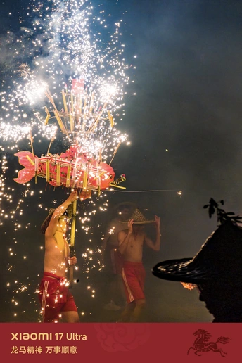 锣鼓擂响,鞭炮齐鸣,烟花璀璨,赤膊青年们舞动着喷射烟火的祥龙、彩凤、锦鲤奔跑,祈求平安健康,风调雨顺,国泰民安。 正月初十晚,国家级非遗项目“乔林烟花火龙”在揭阳市揭东区乔林乔东村震撼上演,点亮夜空,让现场上万围观群众与游客大开眼界,赞叹连连。 📷 Shot On 小米17 Ultra