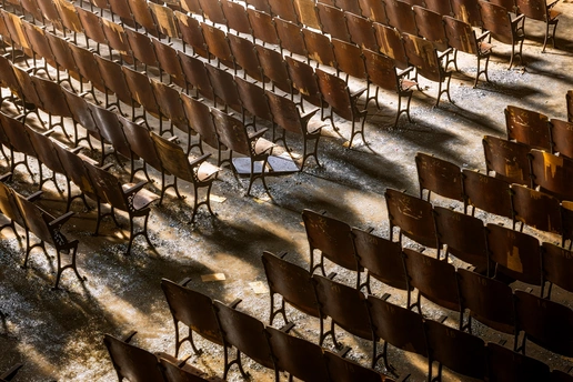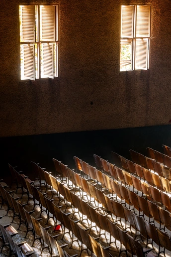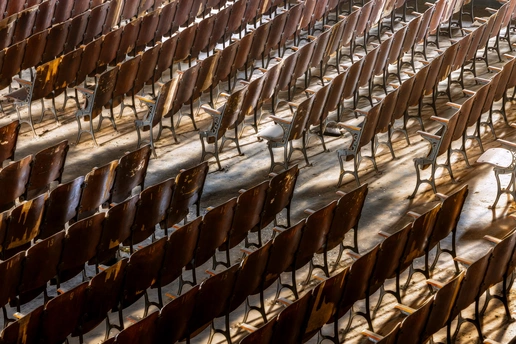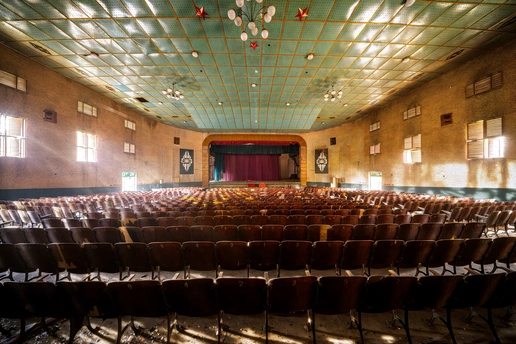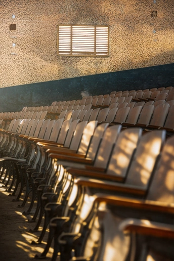拍摄于成都金堂川锅厂的老礼堂,这里藏着一代人的青春印记。眼前的棕色座椅,刻着编号,也刻着当年工人们的欢声笑语,这里或许放过露天电影,办过厂庆晚会,也藏着无数普通人的烟火日常,如今厂房停产,礼堂寂静,可透过窗户的光,依然温柔地铺在座椅上,每一道磨损的痕迹,都是时光写给川锅厂的情书,从未被遗忘。