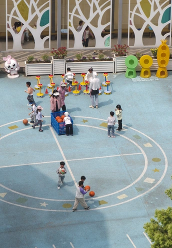 幼儿园的孩子们在操场上自由活动,他们可以按照自己的喜好选择自己的喜欢的活动,正是人生中最无忧无虑的年纪。