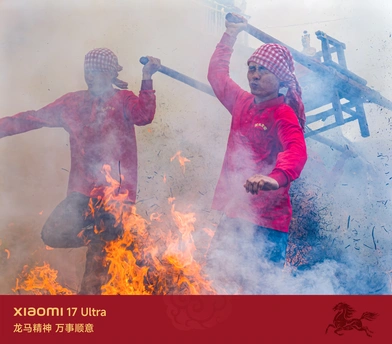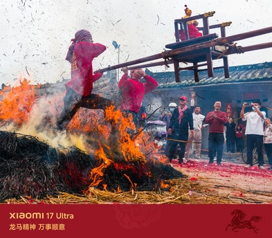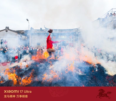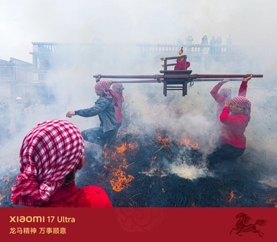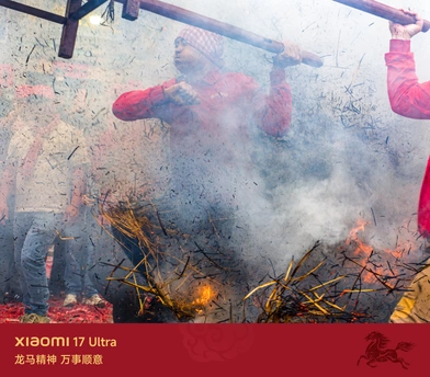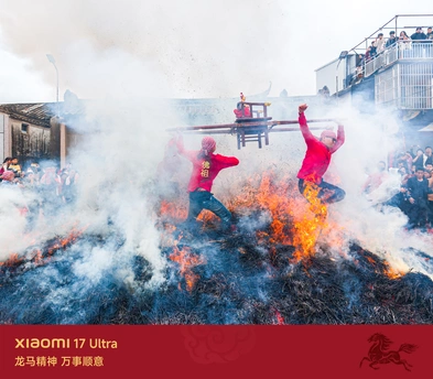 正月十六,揭阳市揭东区月城镇篮头村举行跳火堆民俗活动。 村民们抬着老爷越过熊熊烈火,祈求平安健康、风调雨顺、国泰民安的美好愿望。 📷 Shot On 小米17 Ultra
