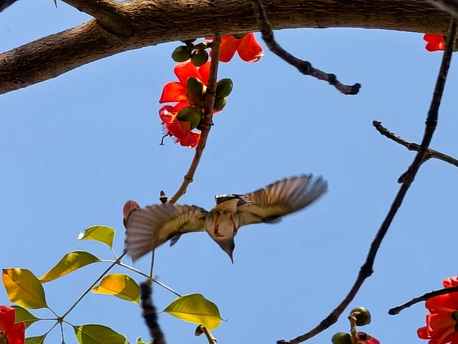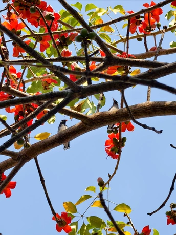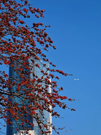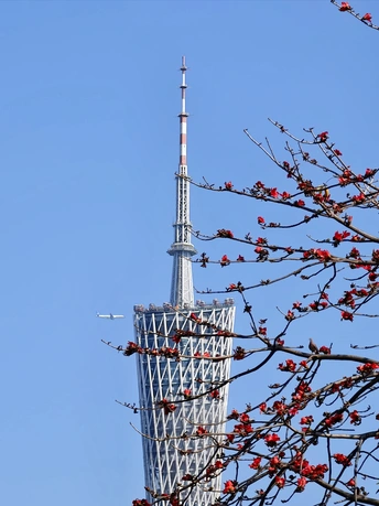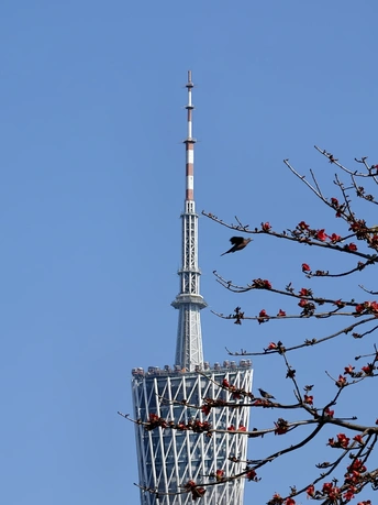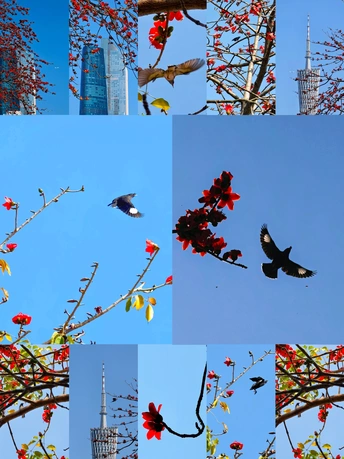 用vivo X200 Ultra长焦,直接定格羊城春日高光时刻! 碧空如洗的午后,英雄花热烈盛放🌺 红棉枝头,小鸟静栖枝头,似是沉醉这满城春色; 天际线上,飞机破空而过,给春景添了满满昂扬感✈️ 塔影、红花、栖鸟、飞机… 一帧集齐广州的城市风骨与蓬勃朝气! 红是城韵,蓝是天色,鸟是闲趣,机是前程~ 这才是广州春天的正确打开方式呀!🐦