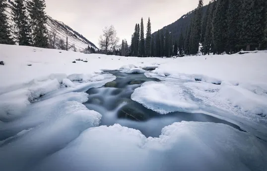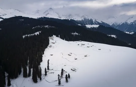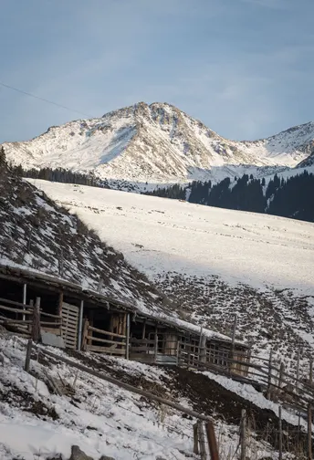 在伊犁的琼库什台,冬天把一切都慢了下来。 雪埋了山路,却埋不住木屋的炊烟;冰封了河谷,却封不住溪水的低语。 红摩托陷在雪堆里,老马在林子里呵着白汽,羊群踩着雪坡慢慢走, 连猫狗都沾了一身雪沫子,在阳光里打盹。 这里的日子,是奶茶的暖,是木柴的香,是雪山在耳边的轻响。 📸 记录下这片被雪温柔包裹的村落,每一寸光都在说:冬天,也可以这么暖。