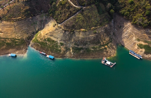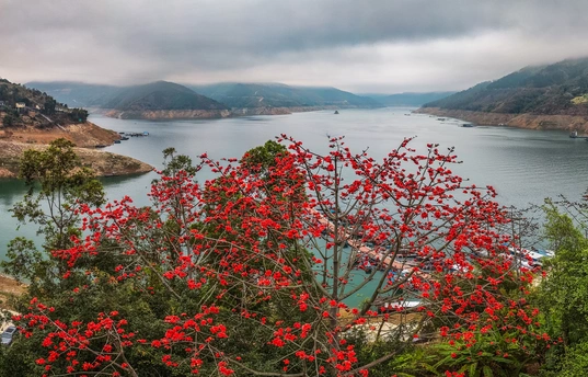 2026年3月12日,贵州省黔西南布依族苗族自治州望谟县蔗香镇,春风又绿红水河畔。 江水碧绿如玉,静静流淌,倒映着两岸的郁郁葱葱。江岸上,新绿的草木与斑斓的山花交织,宛如一幅绚丽的水彩画。各式船只悠然穿梭于江面,划破宁静,却又融入这片静寂如画的山水间。春色别样,一切美得刚刚好。