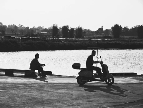 黑白褪去了浮华,只留下最纯粹的光影与轮廓。水边的静默与骑行的匆匆,一静一动,皆是生活最真实的切面。