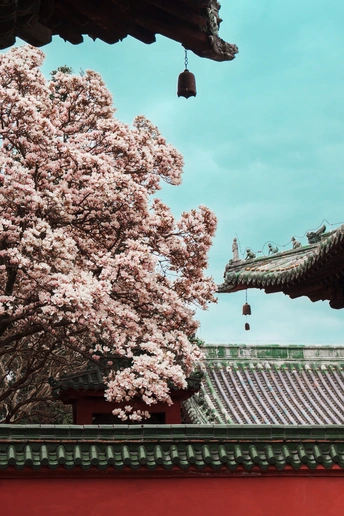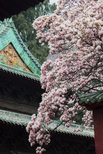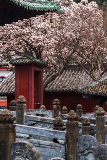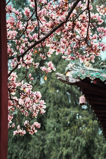素瓣悬于朱墙,如宣纸上落笔留白;疏影横斜处,暗香悄然渡人。报恩寺六百年楠木静默,唯这株白玉兰,年年如约,将禅机开成满树。 花开无声,花落不语。立于树下,方知东方美学的极致,是把繁华看淡,把喧嚣听静。 此刻平武,风过檐铃,一树菩提。