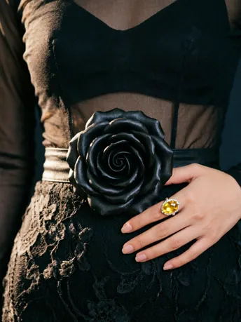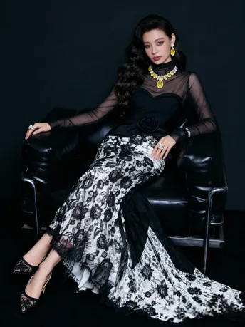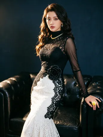 黑纱如夜雾漫过肩头 把喧嚣轻轻挡在身后 颈间黄钻,是凝固的星芒 在寂静里,独自明亮 蕾丝裙摆铺开黑白棋局 一步一曳,都是无声的底气 指尖轻拈那朵黑玫瑰 在明暗交界,与光影对弈 皮革沙发承托着优雅 不动声色,却藏尽风华 香槟杯里晃着微醺的光 盛下人间一半温柔,一半疏朗 不必喧哗,自有锋芒 在黑与白的世界里 你是最安静的璀璨