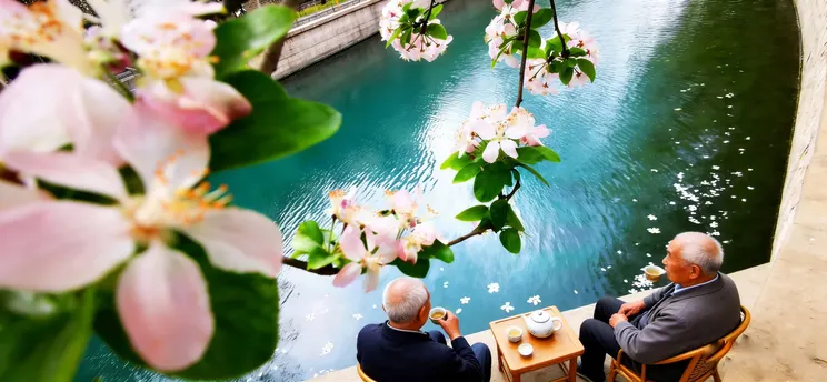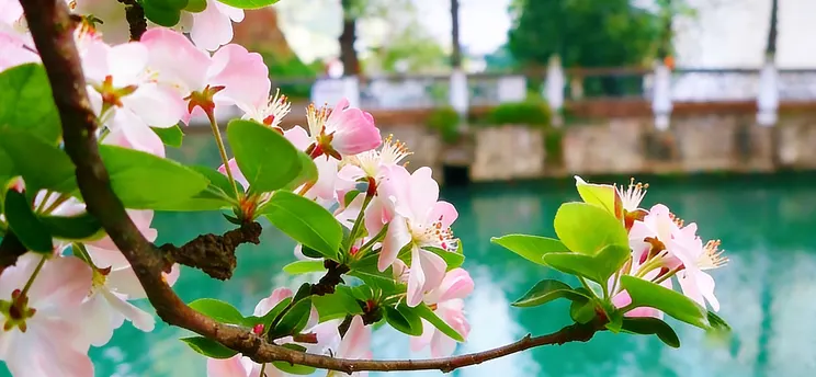 春风拂过石桥,将一河碧水染成温柔的青。粉白海棠垂落枝桠,花瓣轻颤,似是与流水絮语。风过处,花影摇碎波光,一片温柔落进时光里。 不必寻远方,这桥、这水、这满枝海棠,便是春日最动人的诗行。一杯清茶,半窗花影,在桥畔与春天温柔相逢。