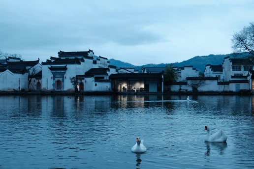 春雨刚歇,呈坎的水还泛着微凉的蓝。 白鹅踱过青石板,又一头扎进漾着波纹的月沼里, 把白墙黛瓦的影子,揉成了一湖碎光。 新抽的草叶沾着晨露,浮萍在水面铺成柔软的绿毯, 连风都慢了下来,裹着草木的清冽, 在马头墙间轻轻打转。 这是徽州的春天, 不张扬,却在每一处细节里, 悄悄生长着最鲜活的生命力。@