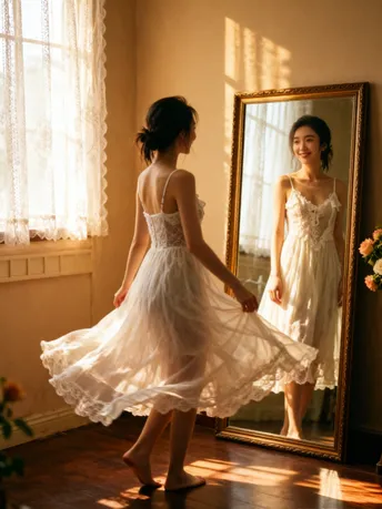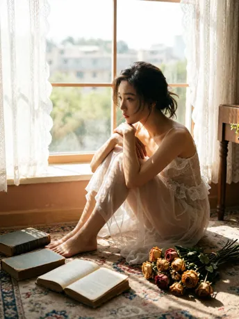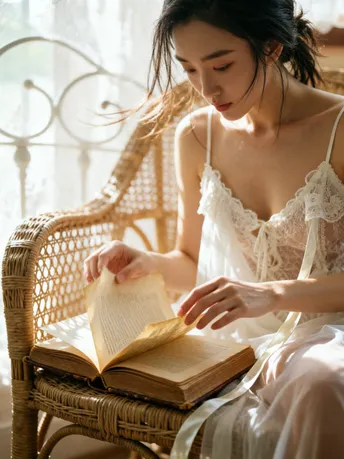 蕾丝与光影在晨雾里对坐 把清晨织成一首无声的诗 书页轻轻一翻 时光便轻轻一颤 那些被藏起的褶皱 都在安静里慢慢舒展 裸足贴着微凉的地板 一步,就量出一寸温柔 空间不说话 却把温度悄悄递到心头 指尖穿过纱帘 风也跟着柔软 光斑漫过所有定义 美好,从此没有边缘 不必追问意义 此刻就是答案 光落在哪里 哪里就是人间最干净的诗篇