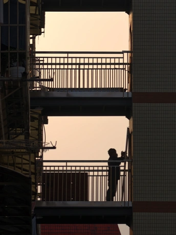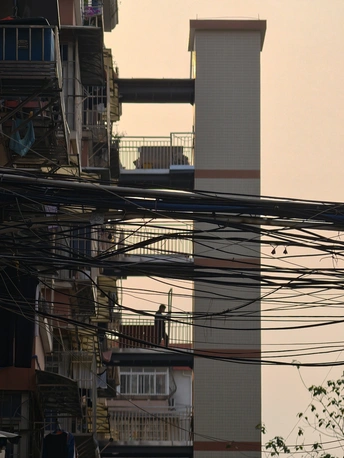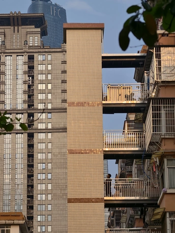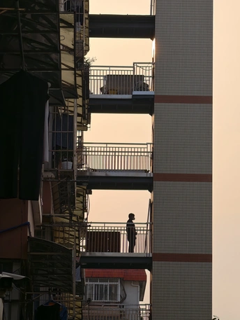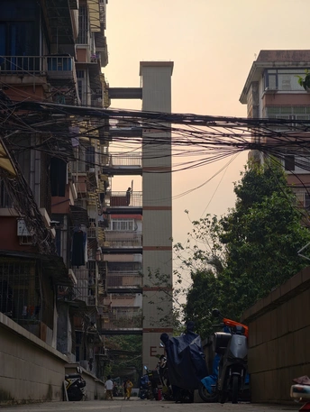 加装电梯的横切面,是广州老城区最特别的几何构图。 夕阳把电线织成网,把人影框成画。 镜头记录下的不仅是改造,更是烟火与高楼的对话。