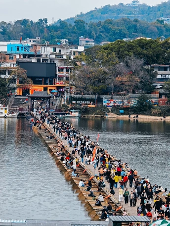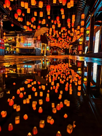 赣州的春天,是慢的。 三月里,我反复在雨中和晴日之间穿行,渐渐读懂了这座城的脾气。最好的是雨夜——宋城的灯火落在地上,透过积水拍下倒影,虚幻与真实在镜头里重叠,像是与八百年前的某个瞬间不期而遇。郁孤台也在雨夜里沉默着,辛弃疾的词句被雨水洗得发亮,游人散尽,只剩我和一江春水。 也有热闹的时候。周六的古城墙和古浮桥上,人多得像一场盛大的集会,我被推着走,却也欢喜——烟火气本该如此。八镜台的晴天晚上,无人机的流光在夜空里写诗,现代与古老忽然握手言和。长征广场的夜晚更接地气,几场广场舞轮番上演,气势之震撼,让人忍不住驻足看了很久。 可惜也有遗憾。五龙客家风情园那天,没赶上百米金龙的表演,只能等待下一次腾飞。遗憾像青苔,悄悄长在心里。 更多的时候,是云层温柔的白天。文庙的飞檐、慈云塔的孤影、福寿沟里千年的智慧、魏家大院的雕花窗棂,还有城市规划馆和博物馆里那些关于这座城的记忆,我都一一走过。中央公园的午后,风很轻,露营人很多,适合什么都不想。 灶儿巷的大雨里,躲进骑楼下,听雨声砸在青石板上,砸出一种古老的回响。阳明路夜市街的雨夜,摊贩的灯光在水汽里晕开,暖融融的。