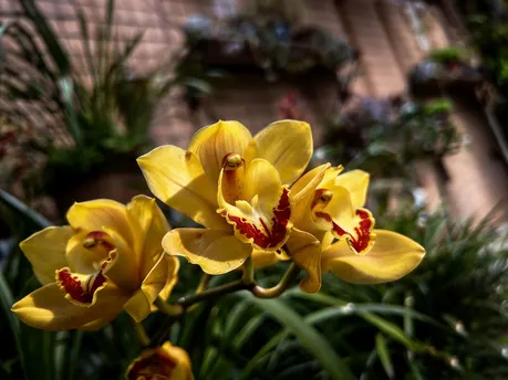 朱红的君子兰攒着满捧热烈,在檐下开成一团暖焰,橙瓣托着金蕊,把春日的底气都绽在风里;嫩黄的蕙兰斜斜垂着花影,瓣边晕着柔光,红纹缀在花心,藏着东方的清润与雅致。 光影漫过庭院,把花瓣的肌理晕出绒绒的金边,背景沉成温柔的暗调,只留这两抹绝色在镜头里舒展。一艳一雅,一炽一润,是岁月在小院里酿出的春信,是草木写给人间的情书,每一朵都带着生活的温度,在镜头里定格成永不褪色的春日大片。