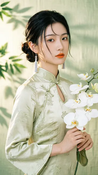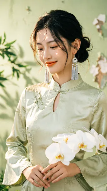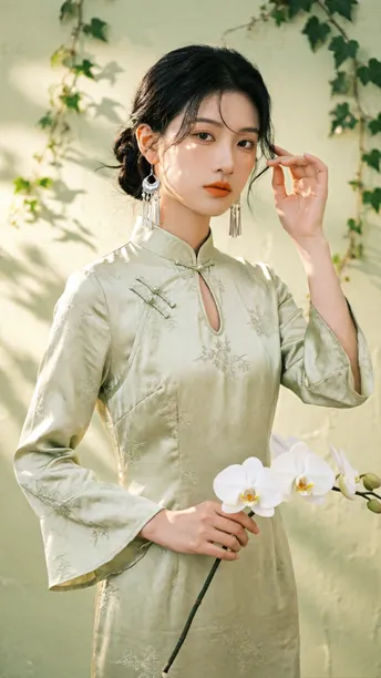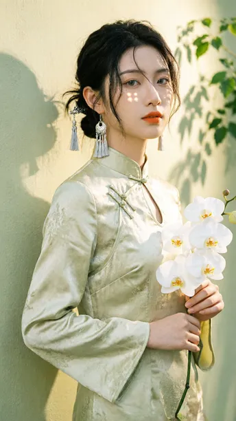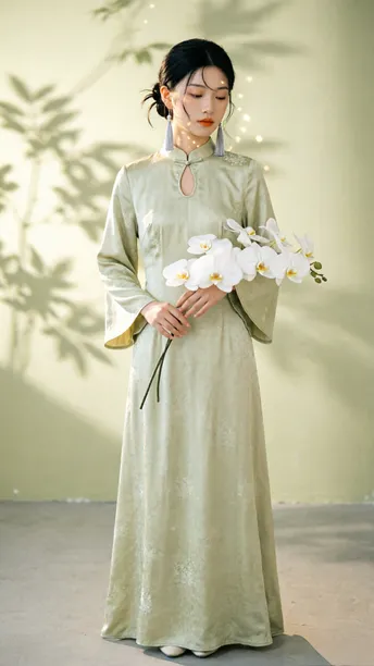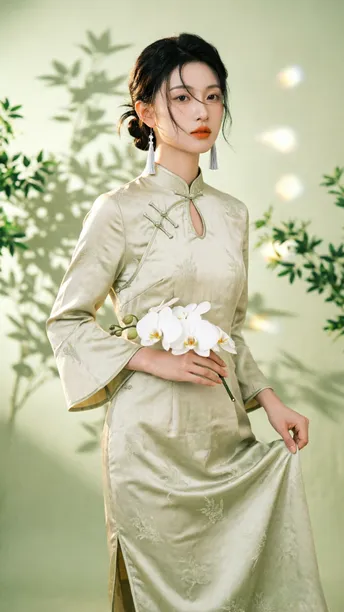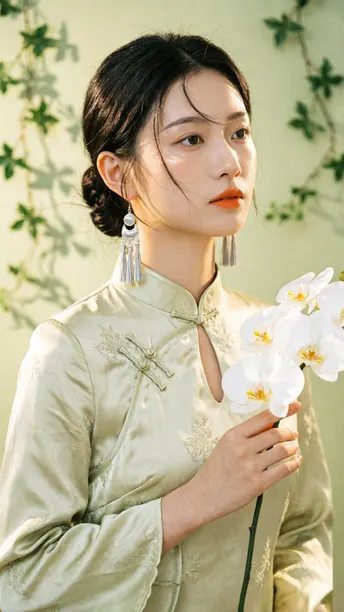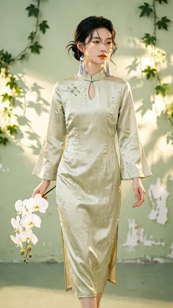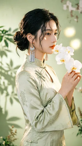 晨雾漫过旗袍领边 开衩的弧度轻倚兰蕊 刚好吻在黄金分割的线 银流苏坠着细碎光澜 风过处,折射几何光斑 把清冷月色揉进耳畔 绸缎承着植物的影 不是刻板的拓印 是流动的、鲜活的笔触 在光影里缓缓穿行 传统纹样藏进现代剪裁 完成一场无声的基因重组 不复刻旧岁的尘埃 美从不是回望过往 是让千年文化的符号 在当下的时光里 静静生长,悄然绽放