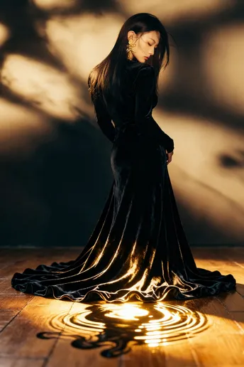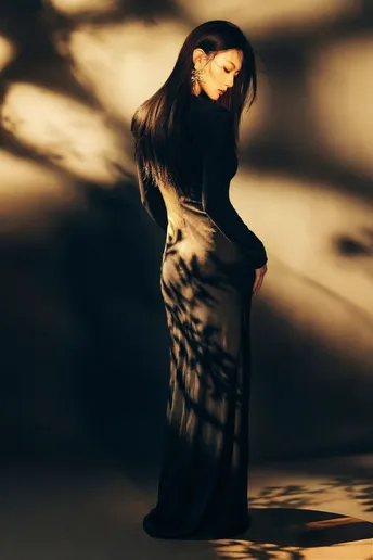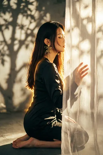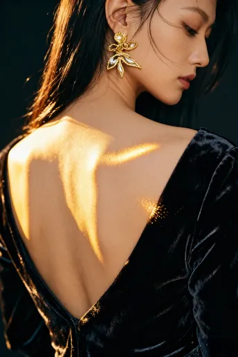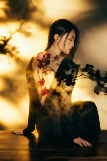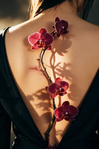 树影在墙上洇开旧时光 你把脊背弯成一弯墨色的河 丝绒裹着体温,漫过桌沿 那串红兰,是河心不肯熄灭的火 暖光舔过骨缝里的安静 发丝偷吻下颌的弧度 指尖轻叩木纹的瞬间 风也学会了放轻脚步 花茎沿着脊柱生长 把沉默拧成暗香 每一片瓣都接住光的碎片 在暗夜里,绣出温柔的形状 时间在此刻打了个盹 你与花,与影 在昏黄里叠成一幅 不会褪色的诗行