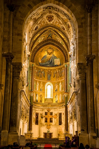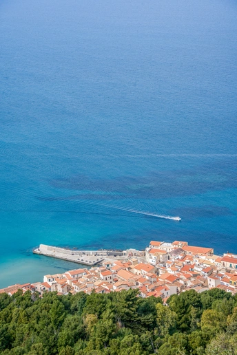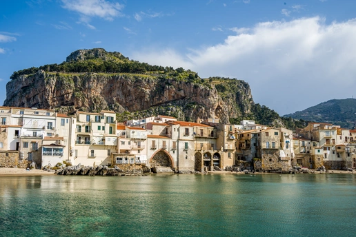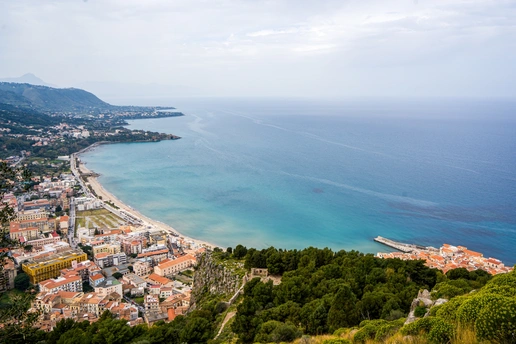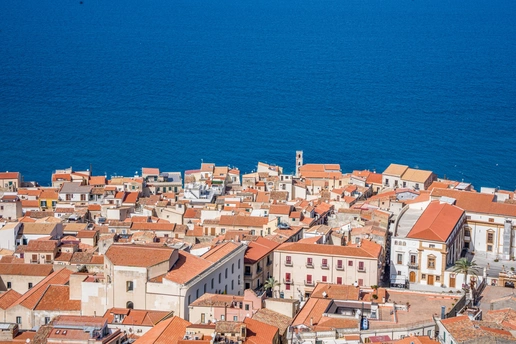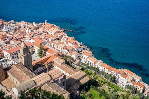 在意大利西西里岛的北岸,切法卢像一颗被海浪轻吻的宝石,静静卧在第勒尼安海的臂弯里。 红瓦屋顶层层叠叠,从古老的岩石山麓铺展到澄澈的海边,与绿松石色的海水撞出明快的色彩。从洛卡山俯瞰,整座小镇如一幅被阳光熨烫过的油画:白墙映着蓝天,渔船在海面划出细碎的尾迹,远处的海平线与天际温柔相融。 漫步在中世纪的石板巷,转角便能撞见石拱门框住的蔚蓝海景,风里混着柑橘与海盐的气息。切法卢大教堂的金色马赛克镶嵌画在穹顶熠熠生辉,耶稣像目光沉静,诉说着千年的信仰与时光。 这里没有喧嚣的拥挤,只有慢下来的生活:坐在临海的石阶上,看落日把海面染成橘色,听海浪与小镇的低语,便懂了西西里最动人的浪漫——是山海相依的温柔,也是时光沉淀的从容。