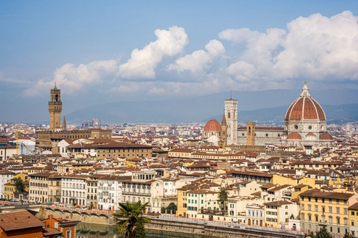 把脚步放慢,在意大利佛罗伦萨的红瓦与穹顶间,接住托斯卡纳的阳光。 圣母百花的橘红穹顶,老桥的流水,米开朗基罗广场的风,都在说:慢一点,再慢一点。 这里的一切,都带着文艺复兴的余温。 她在告诉我: 佛罗伦萨,是一座让人想永远停留的城。
