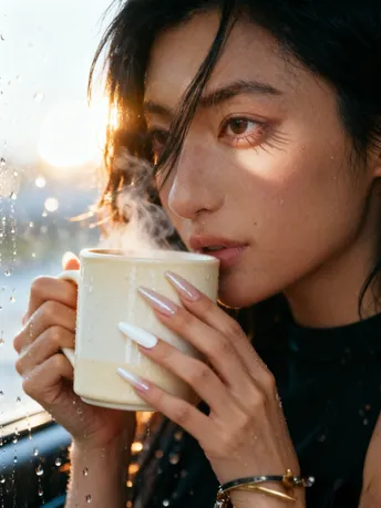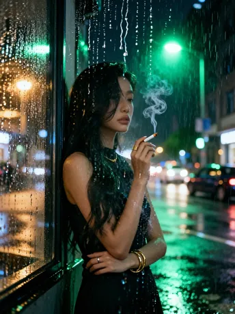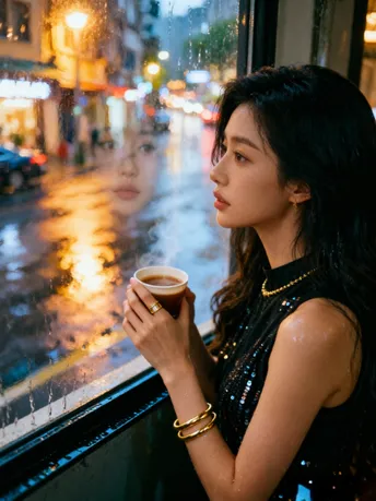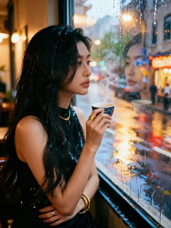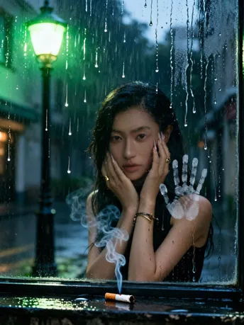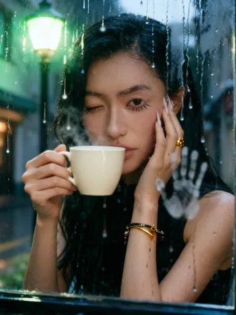 雨把城市揉碎 玻璃窗是冷静的裁纸刀 把潮湿的霓虹 切成一块块流动的色块 咖啡的白汽绕着指尖的烟 在昏光里缠成柔软的线 无声地描着 一分一秒走过的痕迹 我们守着这层透明 一边向窗外张望 贪恋人间的喧嚣与鲜活 一边抱紧玻璃后的安稳 把风雨与未知 轻轻隔在另一边 靠近,又保持距离 伸手,又收回指尖 在安全与向往之间 反复徘徊 像雾与光 永远相依,却永不相融