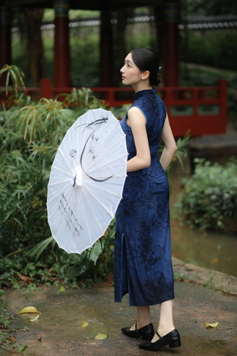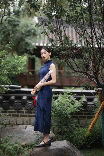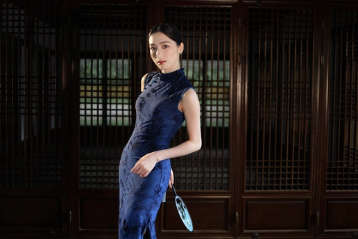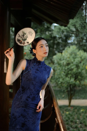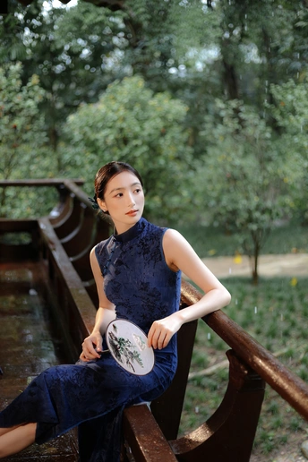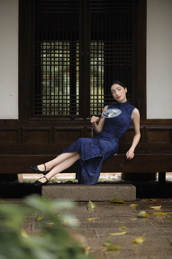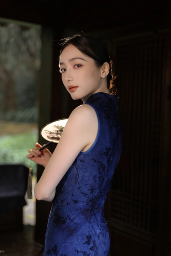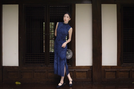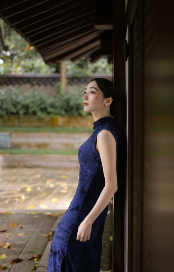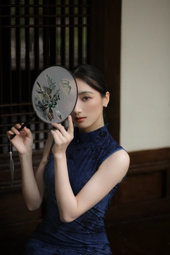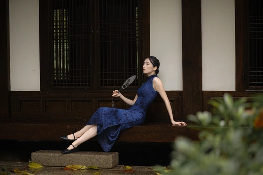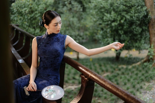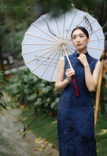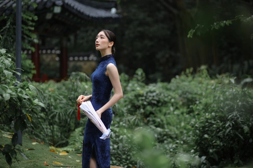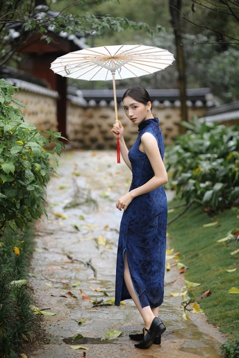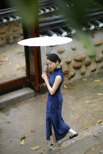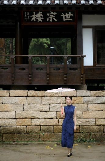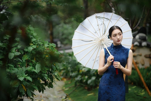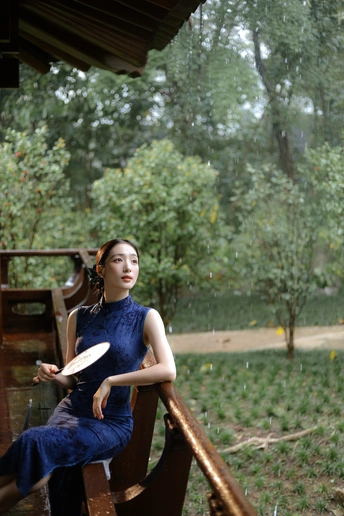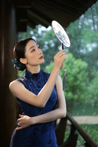 檐下听雨,旗袍温婉, 一伞一扇,一步一景, 东方韵味,尽在眉眼间。