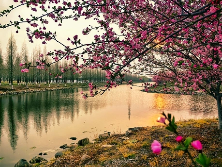 日暮河边