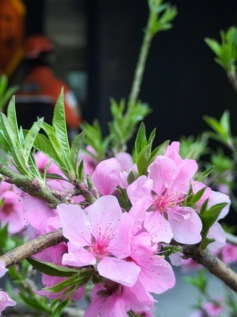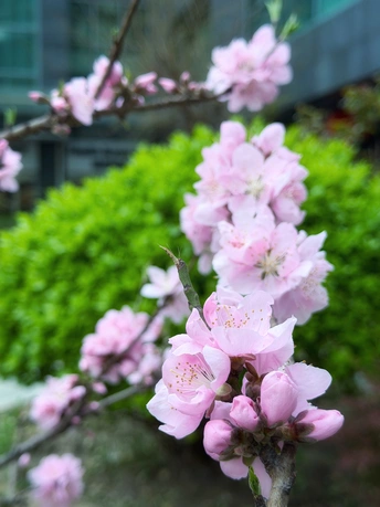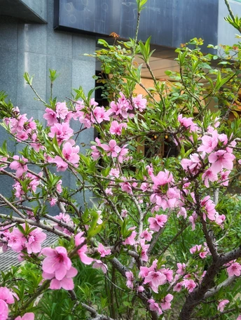 单位院子里的桃花开了。想起了一句古诗:桃之夭夭,灼灼其华。不过修图有点差劲了。没有修出想要的效果😜