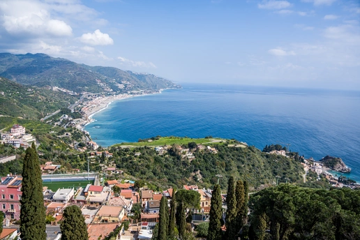 在意大利西西里的东海岸,陶尔米纳把山海、火山与千年时光,揉成了一幅流动的画。 抬头是埃特纳火山,白雪覆顶的山巅仍有轻烟袅袅,以沉默的磅礴,守护着脚下的小城。俯瞰是爱奥尼亚海,湛蓝的海浪拥抱着弧形海岸,白墙红瓦的小镇顺着山势铺展,在阳光下闪着温柔的光。 古希腊剧场的残垣断壁间,石柱与拱门仍在守望,两千年前的戏剧声仿佛还在山海间回响,每一块砖石都刻着岁月的痕迹。复古车站的绿柱与花砖,载着南意的慵懒与浪漫,海风穿堂而过,捎来远方的诗意。老城的穹顶在云影下静静伫立,橙树缀满果实,棕榈树摇曳生姿,路灯映着斑驳的墙,把时光都慢成了温柔的模样。 在这里,火山的炽热、大海的辽阔、古建的厚重与小城的慵懒完美交融,每一眼风景,都是西西里写给世界的情书。