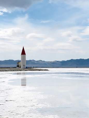 总说茶卡是“天空之镜”,直到站在这片盐滩才懂,它不是镜子,是把天地都温柔包裹的怀抱。 红白灯塔立在盐滩尽头,远山在云里若隐若现,水面把天空的蓝、云的白、塔的红都一一复刻,连呼吸都变得轻缓。 不用追赶日出日落,阴天的茶卡也有独一份的温柔,每一步踩在盐粒上,都像是踩在云朵里。 这趟西北行,在茶卡的风里,圆满了。 📍拍摄地点:茶卡盐湖 💡构图思路:以灯塔为视觉中心,利用水面倒影营造对称美感,大面积的留白给天空与盐滩,突出盐湖的空旷与治愈感,让画面充满呼吸感。