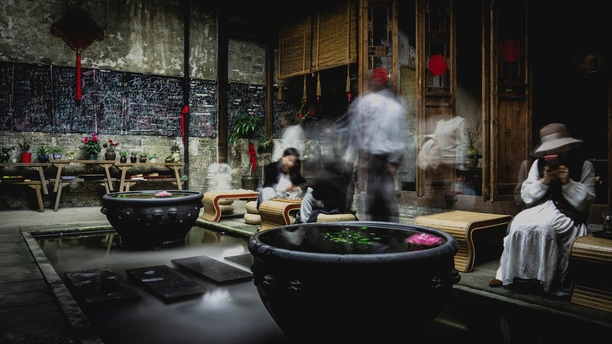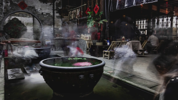 我在芜湖古城采风时用慢门来呈现出人物的朦胧虚影,这与古城的建筑与茶馆的器物形成动与静的对比,这样既保留了画面市井生活的气息又赋予画面超现实的诗意@米拍推荐官@米拍编辑部@米拍社长