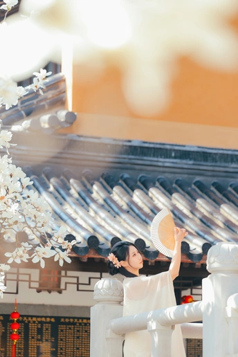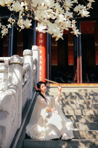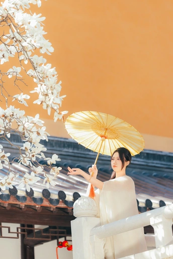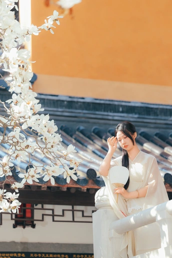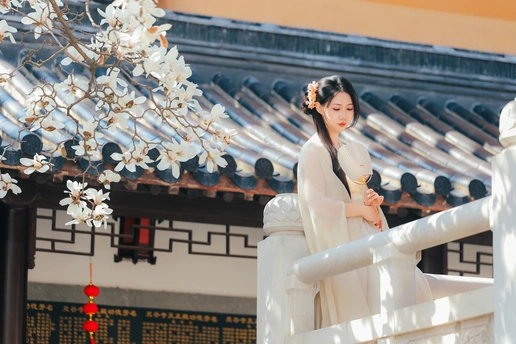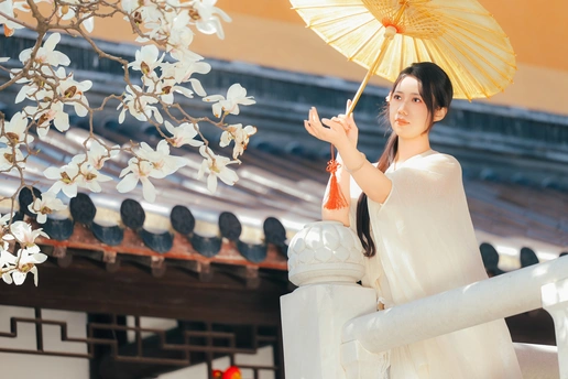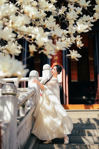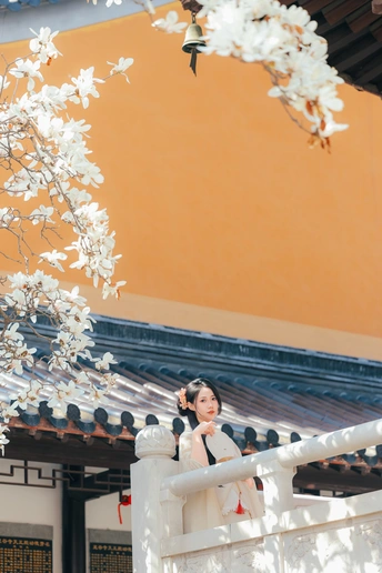 灵谷三月,玉兰如雪落禅檐。佳人素袂倚朱栏,抬袖风起,花雨落眉间。春色连天,不知人在画中,还是画中仙。 模特:鱼游儿 妆造:咔咔 摄影:许摄 器材:佳能R62+50 1.4+RF70200 2.8