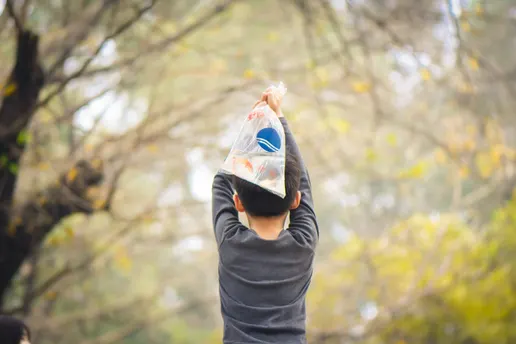 广州动物园里一个小男孩刚好拿着金鱼,举过头顶,被我抓拍下来这张照片,留住了属于童年的时光与回忆