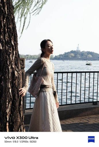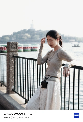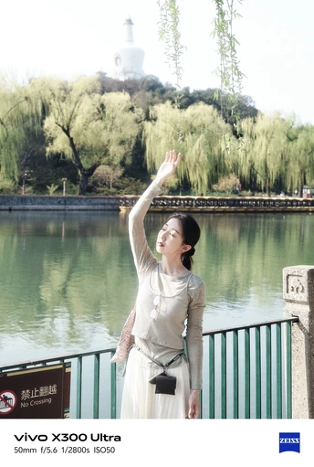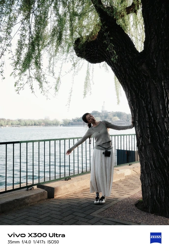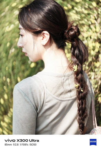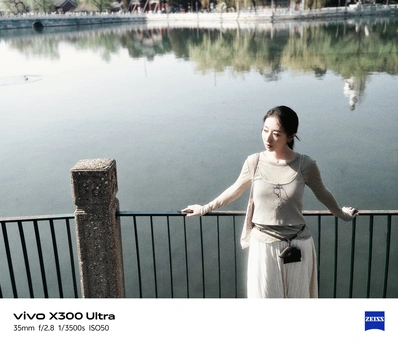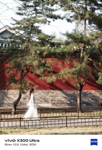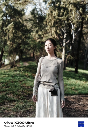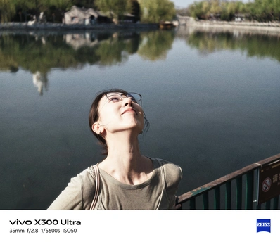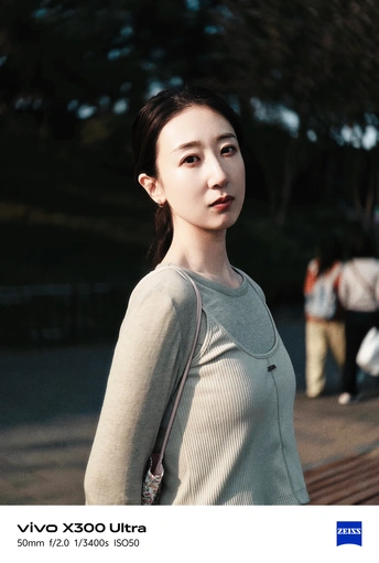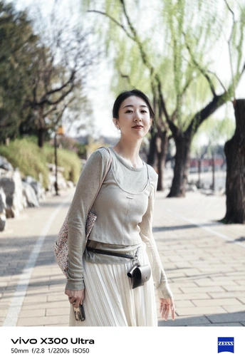 不仅手机是胶片绿配色,没想到连拍照都是胶片感十足。作为一位人像摄影师,使用vivo也拍了不少人物,人像模式中经典的定焦焦段拍照非常方便,光影感、肤色肤质等等表达的也不错。之后自己也在尝试使用手机里更多风格化的色彩滤镜,比如CCD、正片、负片等等。 拿到vivo X300 Ultra之后,对我而言让人惊喜的莫过于蓝图调色盘。于是决定出去拍一组春日胶片感人像。选择需要的滤镜(我选了正片),在色板界面自定义影调、色彩;在进阶界面中的适当调节增加柔光、光晕、颗粒这三项的数值,然后存一个预设;拍照吧,画面立刻拥有胶片感! 人像模式中还可以预设美颜和修型的数值,适当微调,出片更好看!再配合胶片感色调,直出就已经很好了!