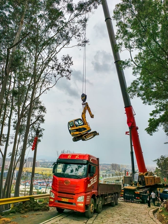 悬崖边上的“空中摆渡”。 在这里,每一次搬运都是对技术与心理的双重考验。 记录这一刻,致敬每一位在高危环境下创造奇迹的建设者。
