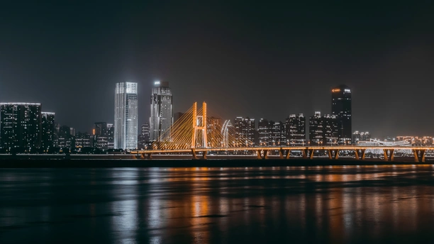 八一大桥伫立在赣江之上,桥下是流水汤汤,不舍昼夜,桥上是穿梭不停的车流,在夜幕里沟通着两岸的灯火。 夜幕下的南昌八一大桥,如璀璨琴弦横卧赣江。橙黄灯光勾勒出流畅桥身,道道斜拉索划破深沉夜空,与两岸楼宇的斑斓灯火交相辉映。江水如镜,倒映出现代都市的流光画卷。这座连接城市繁华的动脉,在宁静夜色中展现出力与美的交融,既见证了英雄城的辉煌今昔,也照亮着南昌不断向前的发展之路。