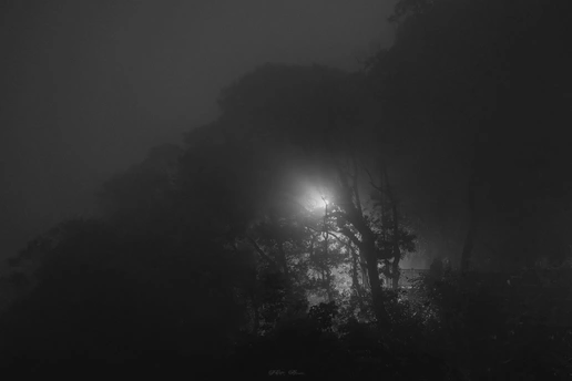 原本兴匆匆的夜爬太平山,打算拍摄香港的平流雾城市夜景,没想到卢吉道的雾气始终不散,什么也看不到。 在路灯和雾气的加持下,给山上的景色增加了很多神秘氛围,仿佛置身于寂静岭一般。 那么索性就利用这个雾气拍一点不一样的吧。
