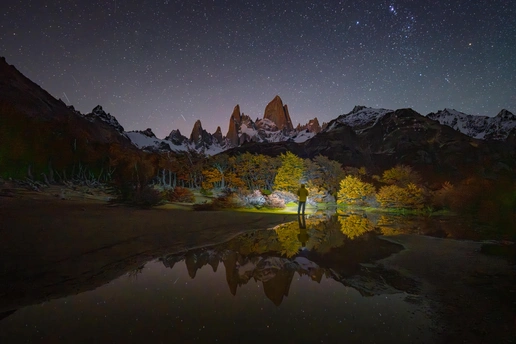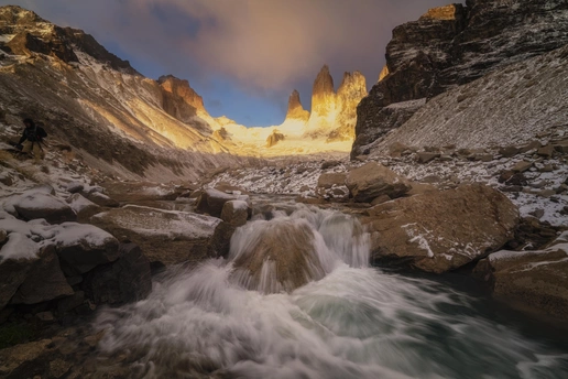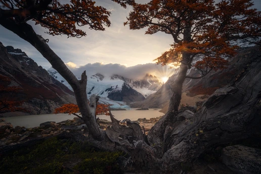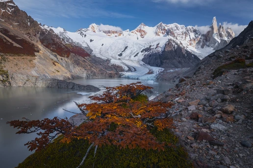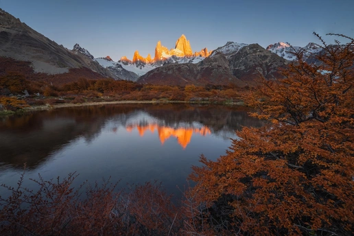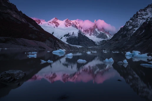 每年的巴塔哥尼亚团组都是非常练人的,一个是露营好多天,二是要跋山涉水徒步来到达拍摄点。不过我的团组每年都比较幸运的能拍摄到四大主峰:妃子峰,托雷峰,三塔峰和角峰。每次都很幸运地躲过了阴雨天而让跋山涉水的拍摄得到了应有的回报。早起的两个日出蓝调时刻和金顶时刻都是这几座主峰最迷人的时间。很多摄影师都执着于日出金顶的诱惑却不肯早起一会拍摄那个幽紫色,蓝调衬托下的美丽高山辉。这个才是这些高海拔地区耸立的山峰最优美的一面。今年的这些片子让我们付出了更多的时间在狂风下追逐着一次次的美丽时刻。今年巴塔哥尼亚地区雨水丰富,造就了低温和很多水塘的前景,每年不同的拍摄环境充满了挑战和机遇。这也是风光摄影师们最爱的不确定因素,因为狂飙里有句话还挺经典的:风浪越大鱼越贵!翻译在风光摄影圈里就是:越极端的天气越出大片,不信吗?看看这些图[呲牙][呲牙]。