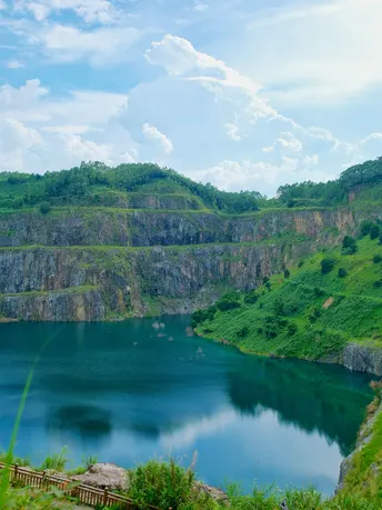 蓝天白云下,这里的天坑好美,吹着风,很治愈; 绿宝石一样的小天池,湖水特别绿,晴天非常好看 全程路线都有水泥路,和石阶梯,爬山⛰️非常方便; 老人小朋友都能轻松爬上,家庭休闲散步的好地方; 游玩小tips: ✅🉑遛娃🉑遛狗🉑野餐🉑露营,在这散步非常惬意,从山脚到山顶大概30分钟; ✅山下有农庄和小卖部,有公共厕所,一路上也有自助买饮料的地方,不用背太多水; ✅夏天记得带防蚊水,和防晒; 导航:天池农场(这里是上山口,可在这附近停车) 📍位置: 广州黄埔石牙顶天坑 🚇交通: 地铁14号线镇龙西站B转公交444路或打车; 🅿️:自驾的话🉑在停车场停车🚗
