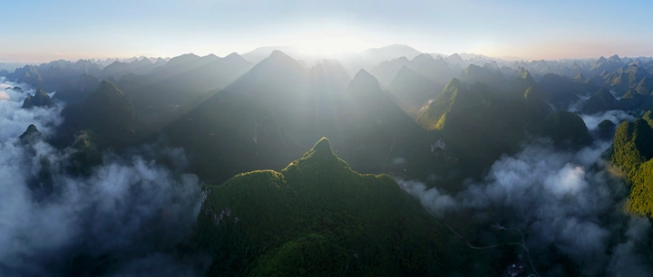 一峰为冠,万峰为臣;云涛作海,晨光为旌。
