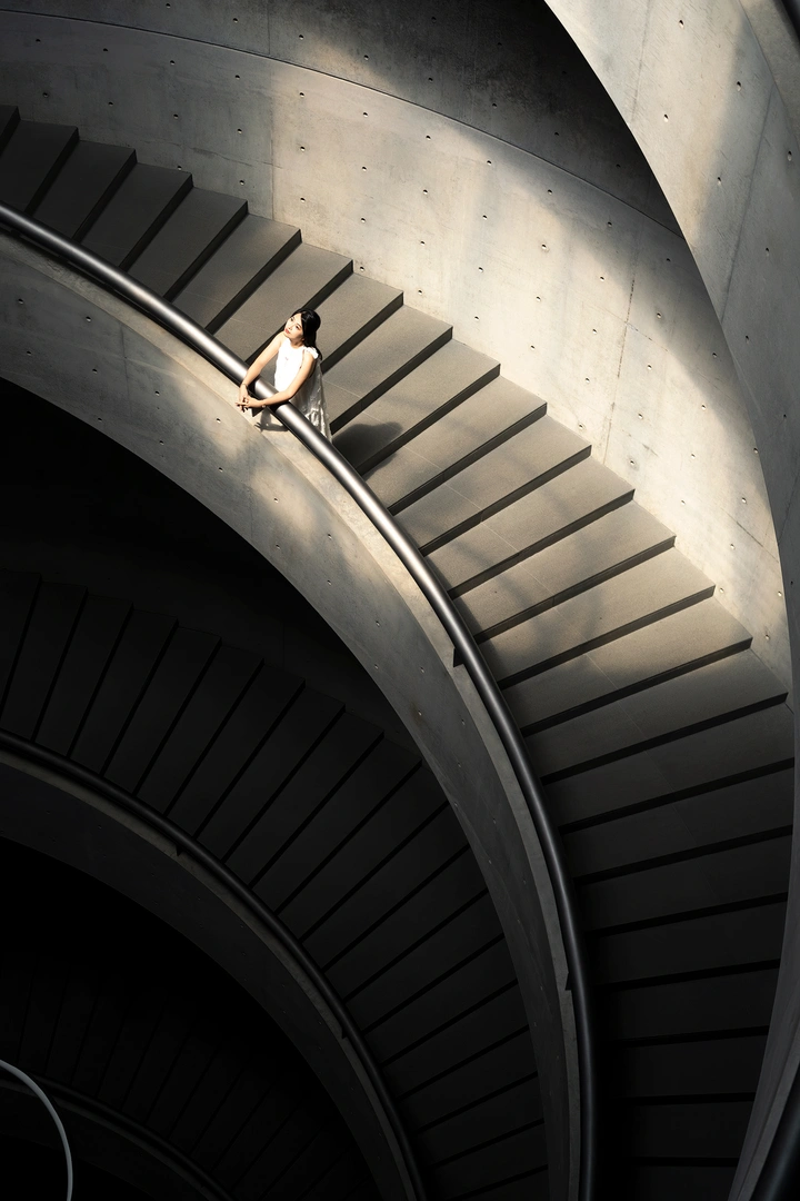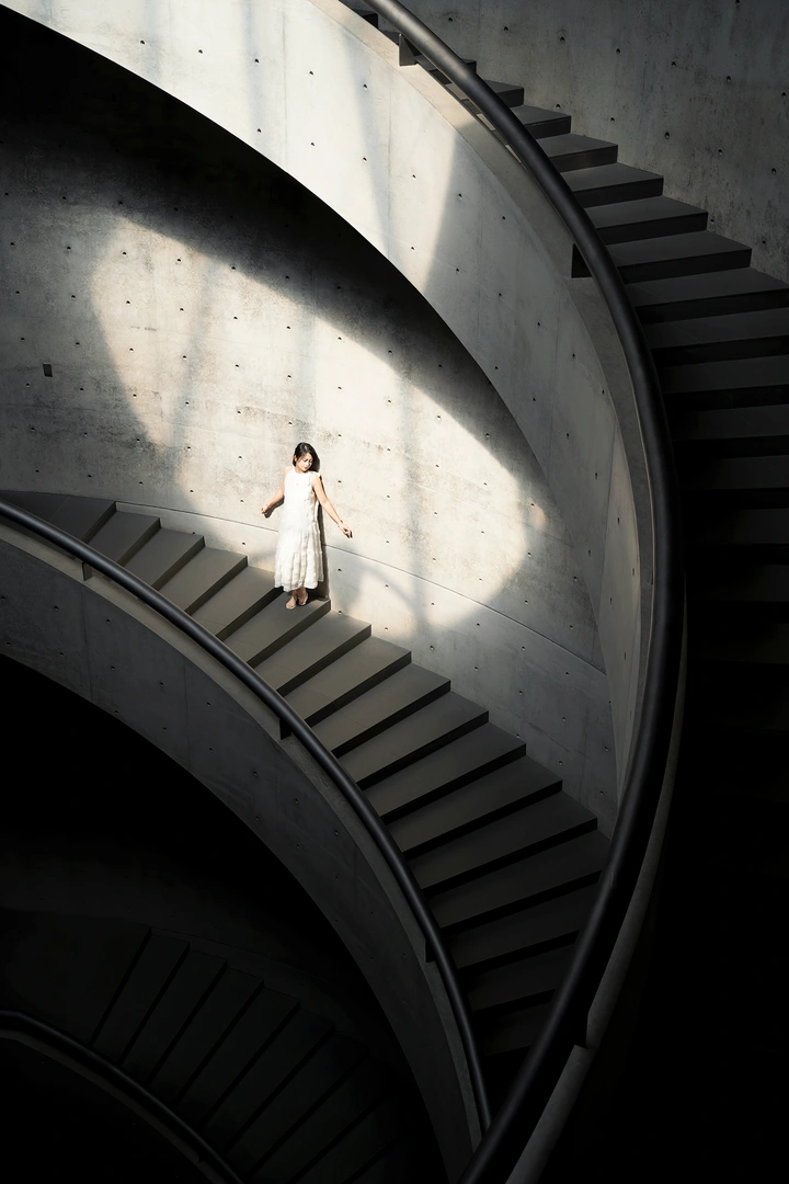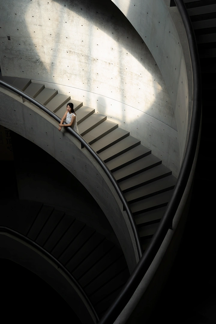 螺旋的楼梯是沉默的诗,日光为它写下温柔的注脚,而她是诗里最轻盈的一行。