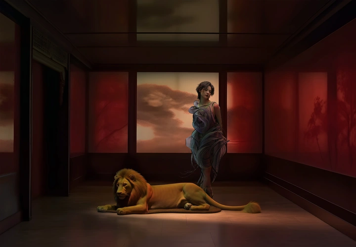 「 乌有· SUMC × GAFA 」 忽大风起,尘气莽莽然,城市依稀而已。既而风定天清,一切乌有。 创作说明:近年来,人工智能技术在各行各业中得到广泛应用,其中AI摄影越来越受到人们的关注和喜爱,这次将使用“AI置景+棚内实拍“这一有趣而具有挑战性的摄影创作方式,发掘、创作并探索摄影的可能性。用AI生成场景合成人像摄影作品的创作方法,通过AI技术的支持,可以帮助摄影师更好地表现人物的特征和情感,也能够让摄影作品更具有观赏性和收藏价值。同时,其具有丰富表现手法和提高创作效率等优势,能够让摄影作品更好地适应当今时代的审美。 统筹 / 摄影:XIAO 灯光:Jian、姜 造型:桃子 模特:赵晴 AI / 后期:XIAO 现场助理:乌龟、llnov00